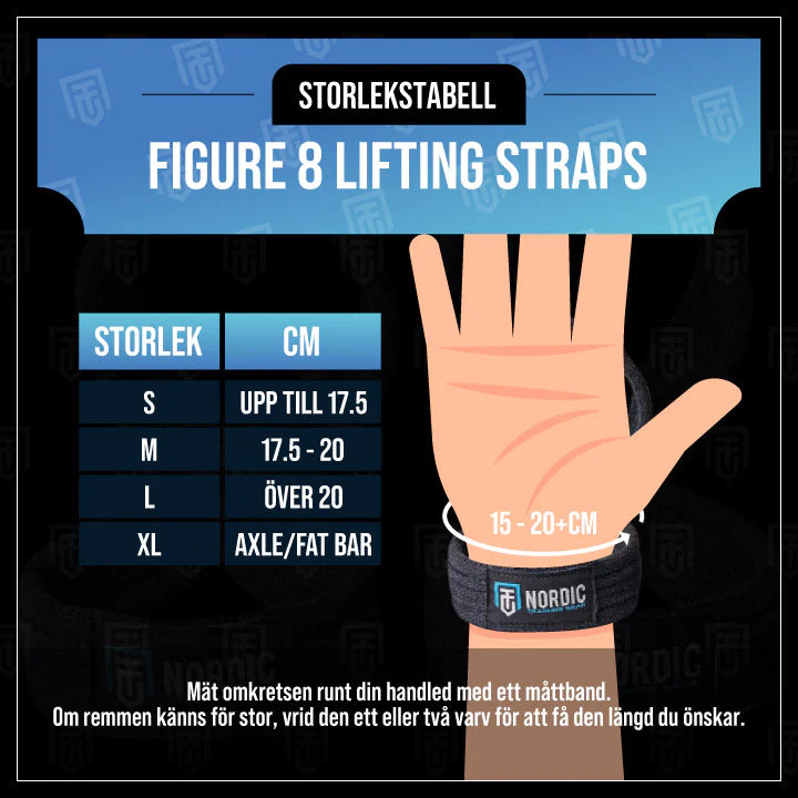 Överlägsen greppsäkerhet: Våra Figure 8 Lifting Straps låser fast dina händer runt skivstången och minskar risken för att stången glider.
